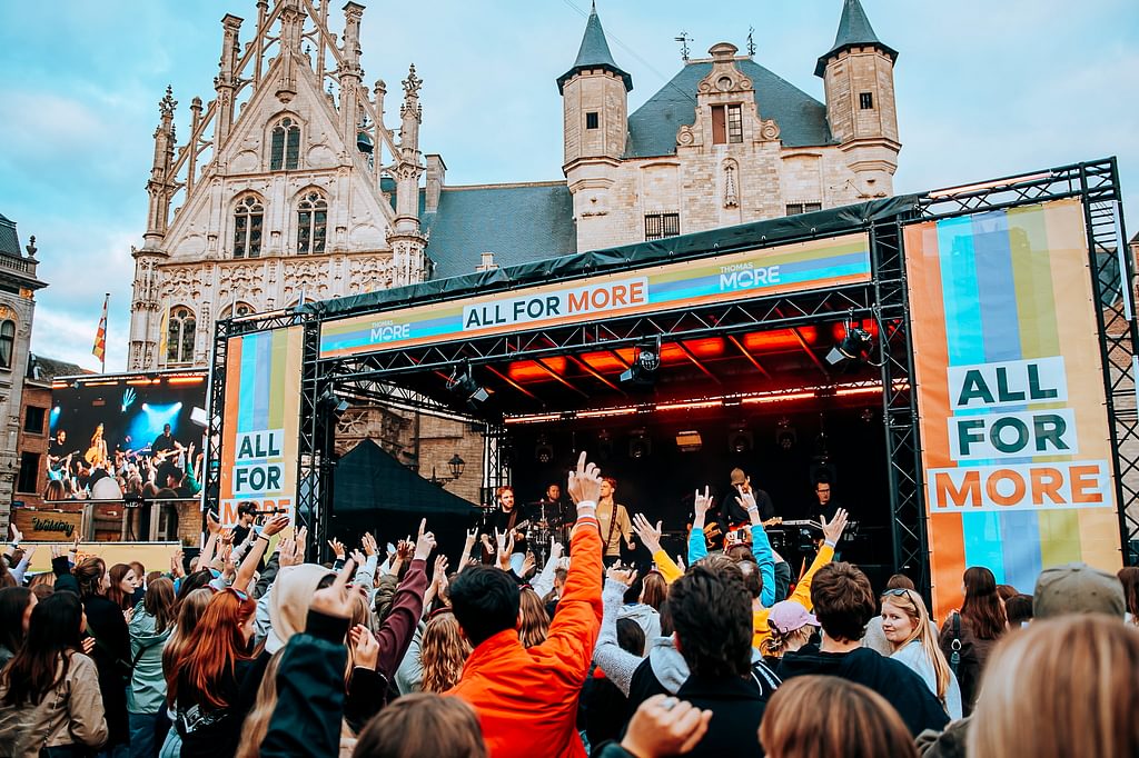 De Thomas More-hogeschool organiseert vandaag All for More, een gratis festival voor studenten en personeel in Mechelen. Het spektakel vindt plaats op de Grote Markt, waar de deuren vanaf 16.00 uur geopend zijn voor zo’n 2.500 bezoekers.