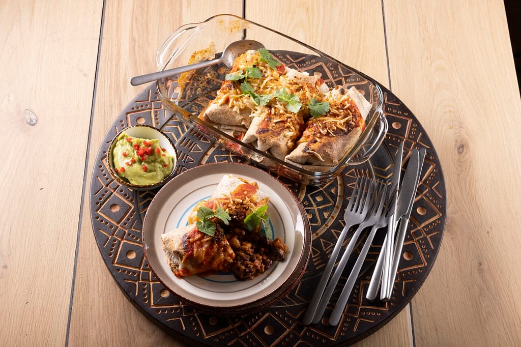 Snelle burrito's met plantaardig gehakt & bonen